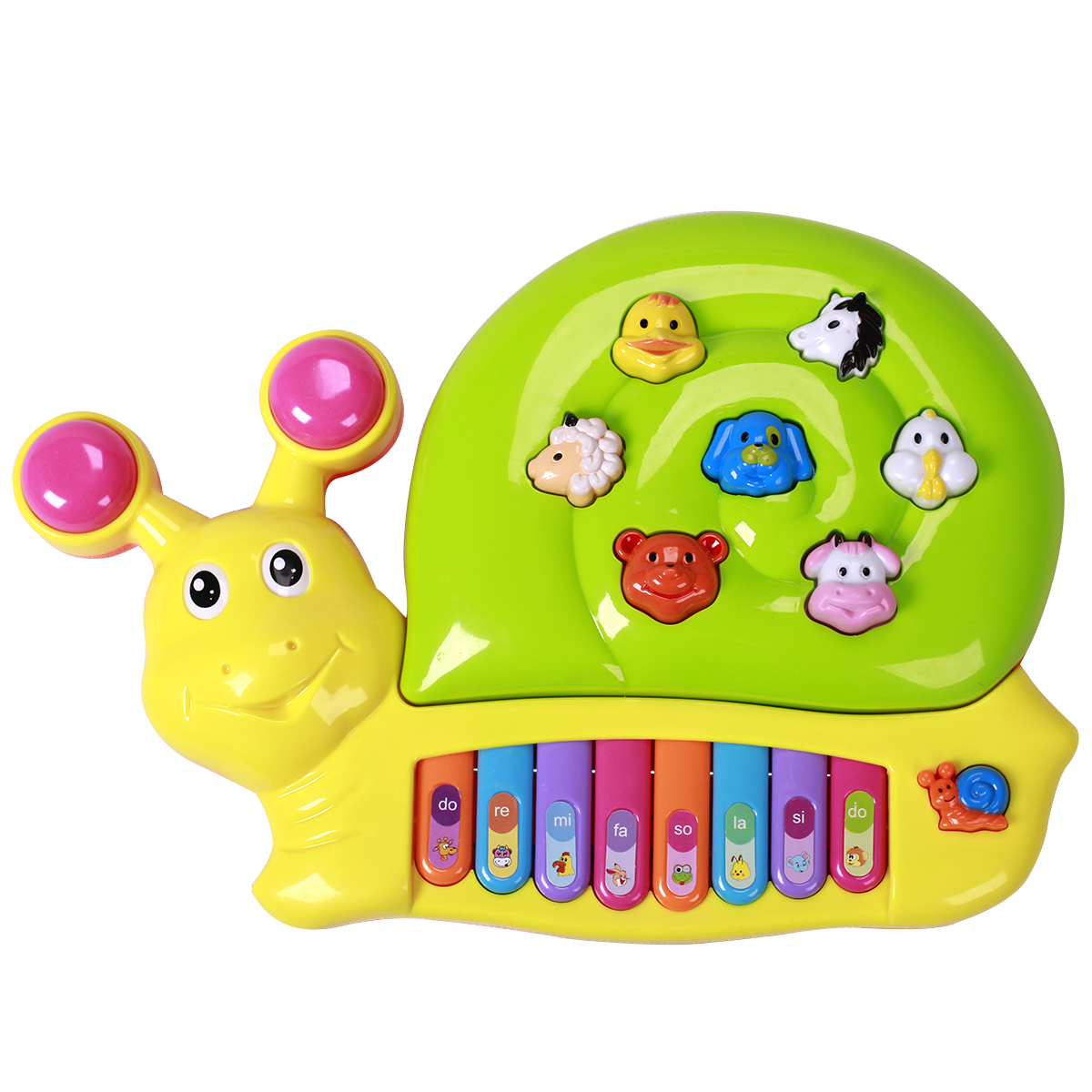 - Đàn Piano hình ốc sên với các phím đàn nhiều màu sắc và âm thanh sống động sẽ giúp bé dễ dàng nhận biết giai điệu, âm thanh và phát triển thính giác.