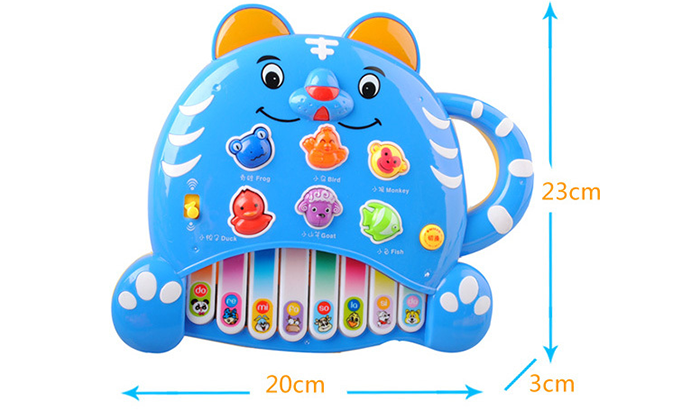 - Đàn chạy pin bấm vào hình bông hoa hoặc phím đàn sẽ phát ra âm thanh vui nhộn. Với hàng chục bản nhạc vui vẻ. Đèn màu nhấp nháy sinh động. Tạo sự thích thú cho bé khám phá những âm thanh thú vị.