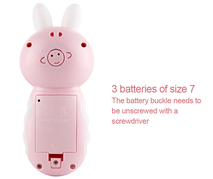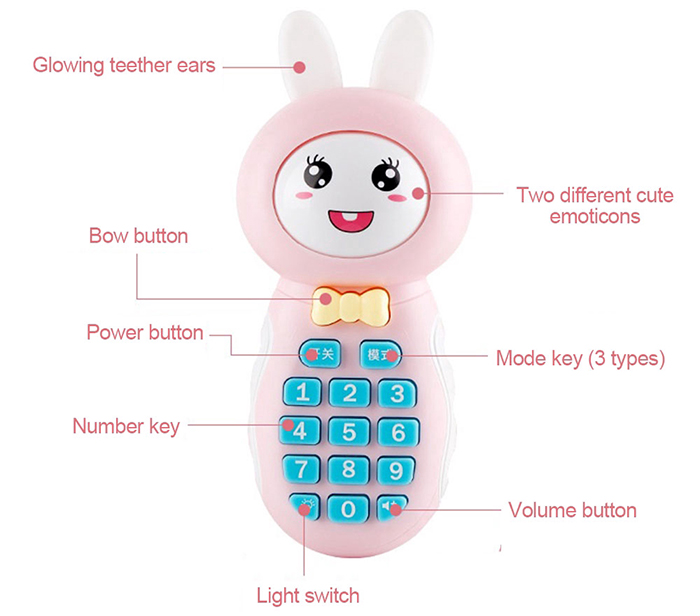 Đồ chơi điện thoại khuôn mặt thỏ vui nhộn sử dụng Pin AA để tạo thành tiếng nhạc vui nhộn, kết hợp với màu sắc nổi bật kích thích thính giác, thị giác của bé phát triển. Sản phẩm được làm từ chất liệu nhựa an toàn, theo tiêu chuẩn đồ chơi cho bé.