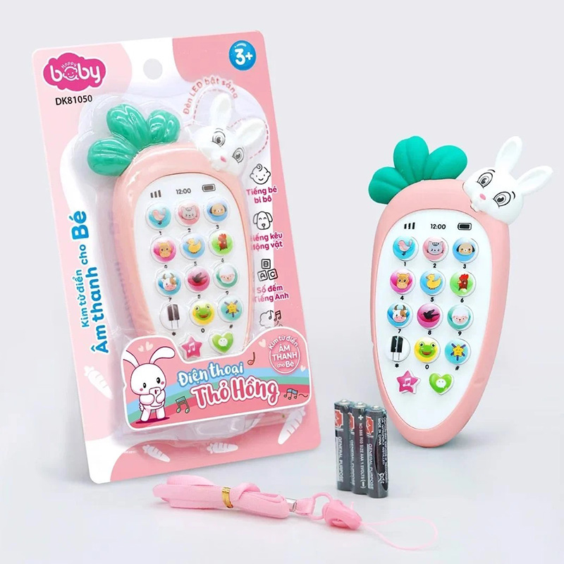 Đồ chơi điện thoại thỏ hồng Duka DK81050 với thiết kế ngộ nghĩnh hình quả cà rốt đáng yêu