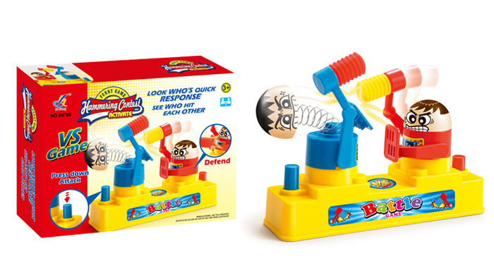 Đồ chơi đối kháng đập đầu 64788 với thiết kế gồm 2 nhân vật đầu tròn áo xanh và áo đỏ đang dơ búa và khiên, khuôn mặt cáu kỉnh nom rất hài hước, cùng 2 nút bấm kích hoạt tay cầm búa cử động. Đồ chơi được chơi với 2 người tham gia, ai nhanh tay và tấn công tốt hơn, đánh trúng đối phương sẽ chiến thắng.