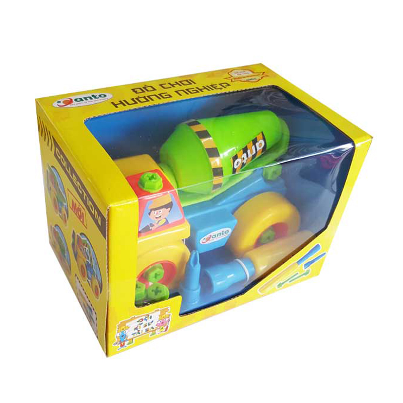 - Bé có thể dùng tô vít vặn những con ốc đầy tự tin để tháo các chi tiết ra như: bánh xe, đầu xe và bồn trộn. Những con ốc được thiết kế rất chính xác nên bé có thể tháo dễ dàng, không bị đau tay. Sau đó bé lại sử dụng tô vít vặn những con ốc lại để lắp lại hoàn chỉnh một chiếc xe trộn bê tông vô cùng dễ thương. Mỗi sản phẩm đều có dư 2 chiếc ốc giúp cho bé có thể tháo lắp thoải mái không sợ bị mất ốc thì sẽ không thể lắp lại được.