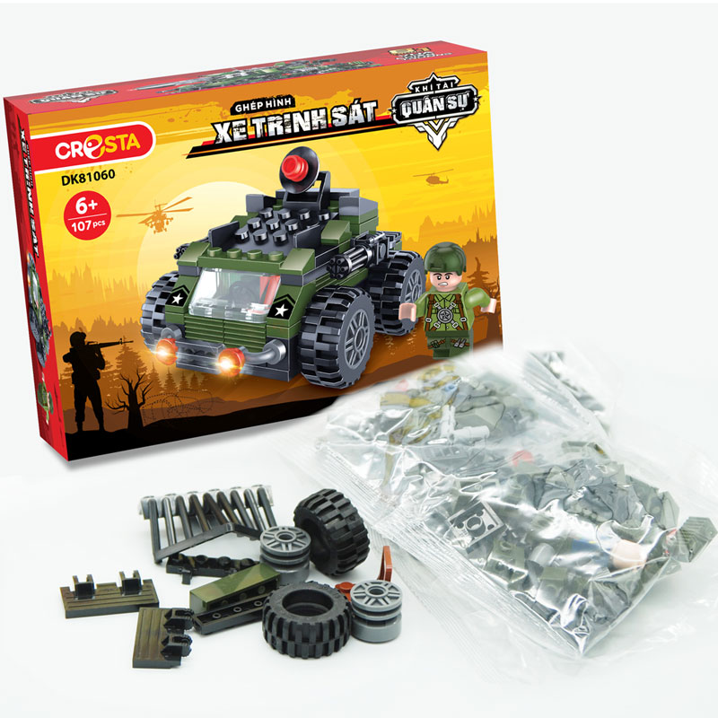 Thông tin sản phẩm của đồ chơi ghép hình khí tài quân sự Cresta - Xe trinh sát DK81060-107 chi tiết