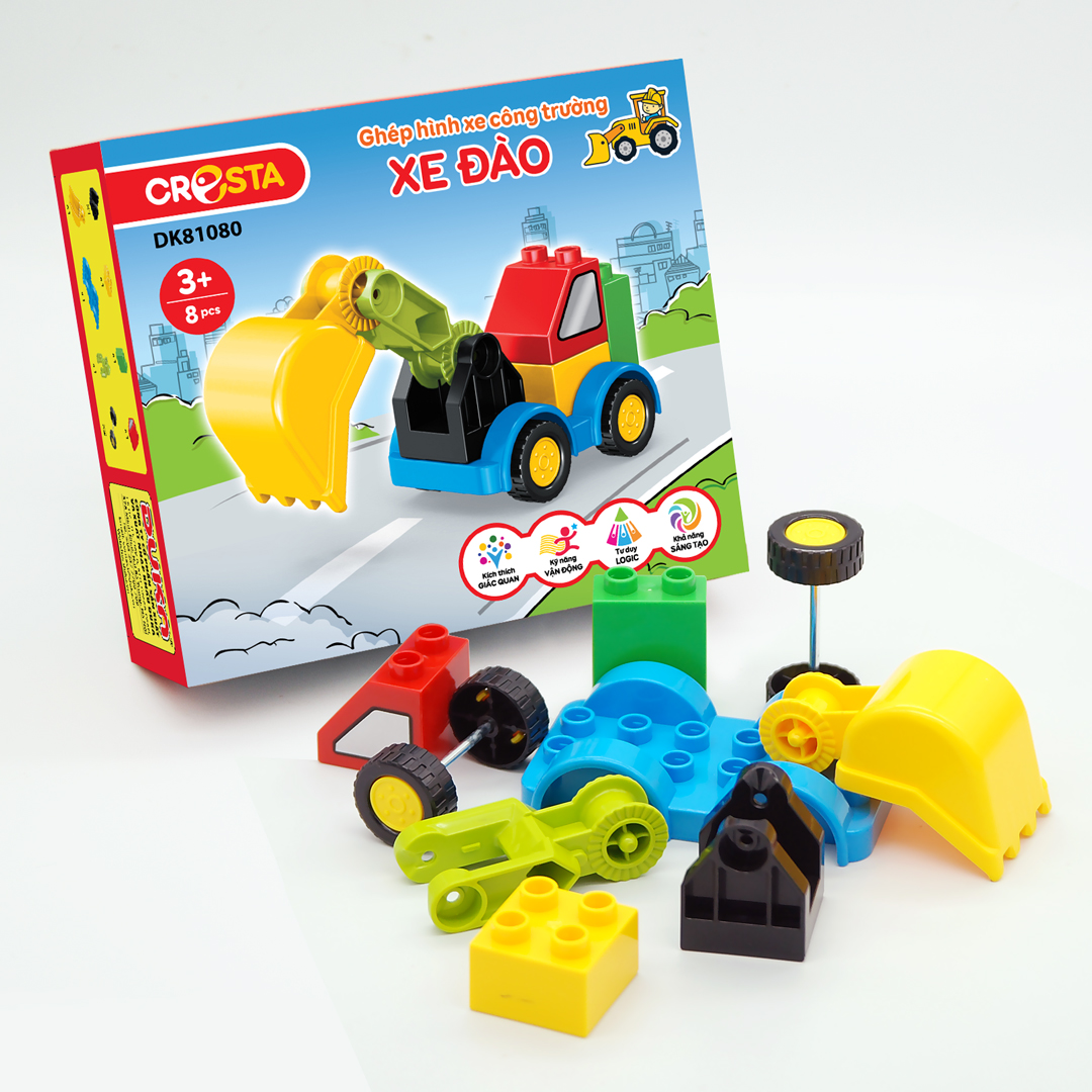 Đồ chơi ghép hình xe công trường Cresta - Xe Đào DK81080 với thiết kế mô phỏng chân thực, giúp các bé nhận biết, phân biệt được các màu sắc, hình khối, các phương tiện máy móc trên công trường xây dựng.