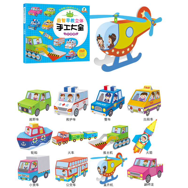 Đồ chơi giấy gấp 3D - Mô hình phương tiện giao thông được làm từ chất liệu giấy xốp, đã được cắt sẵn, bé nhìn theo hướng dẫn để ráp thành các phương tiện như trực thăng, xe cứu thương, cảnh sát, taxi...Thông qua món đồ chơi, bé sẽ học được cách tư duy và kết hợp tay – mắt linh hoạt, đồng thời nhận diện đọc tên các phương tiện giao thông thường thấy