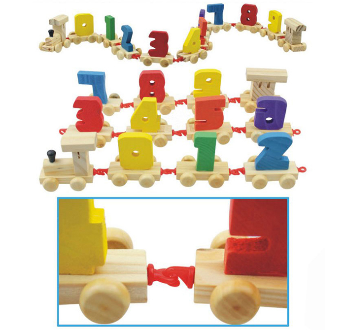 Đồ chơi gỗ A+ AYX0012 có dạng đoàn tàu bên trên là những con số với nhiều màu sắc khác nhau giúp trẻ vừa tập đếm, làm quen với các con số, nhận biết và phân biệt từng màu sắc. Sản phẩm còn tăng khả năng vận động cho bé khi kéo di chuyển các xe.