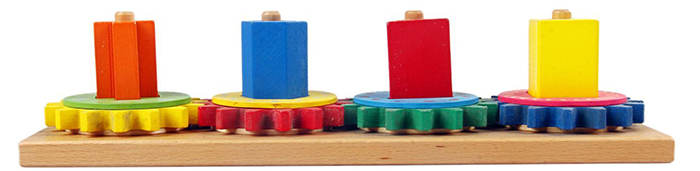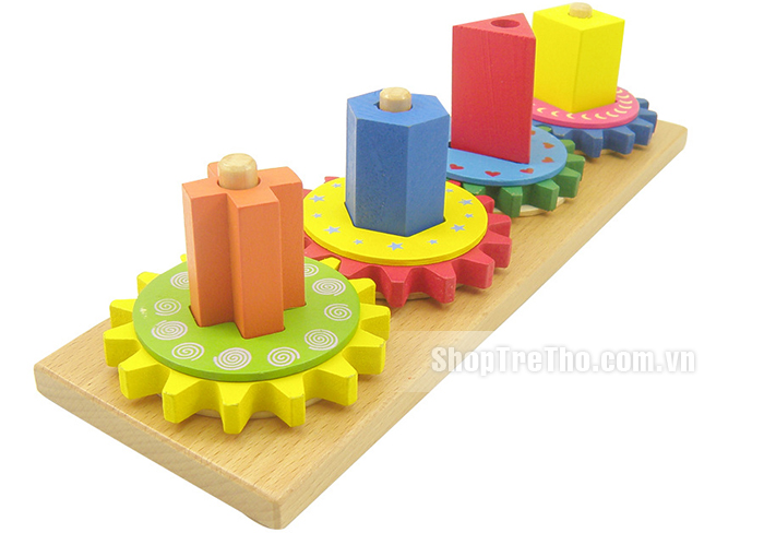 - Khi chơi bé phải xếp làm sao để đưa những bánh răng vào những khối hình thích hợp