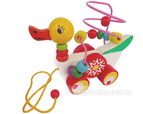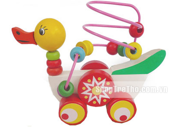 - Bộ đồ chơi được thiết kế thành một chiếc xe kéo hình con vịt với những hạt vòng nhiều màu sắc, có thể di chuyển được.