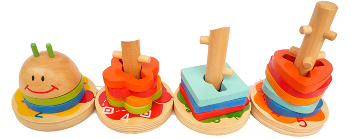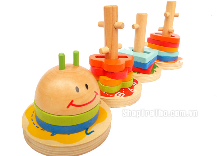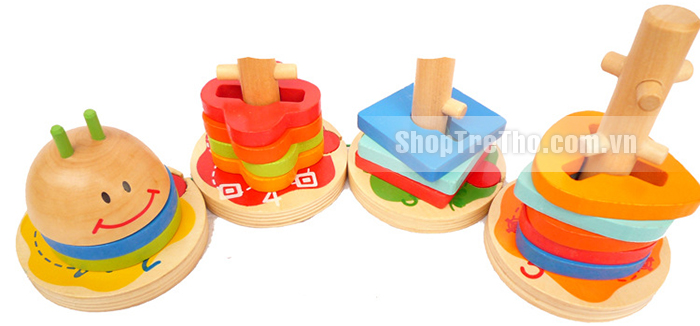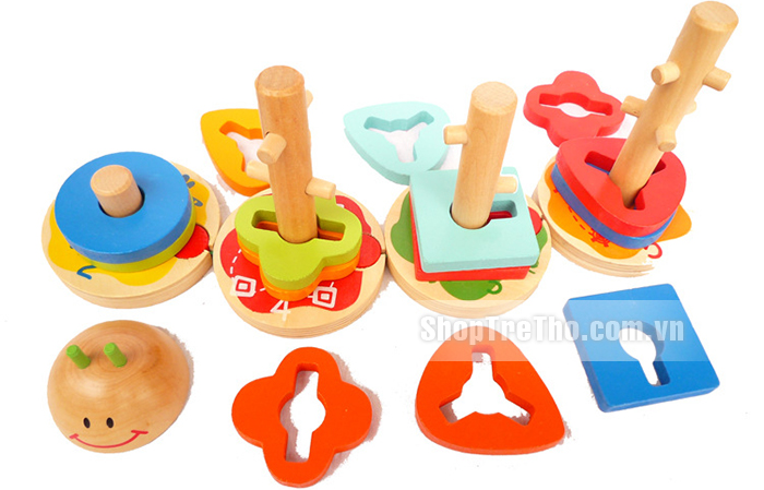 - Từ các hình khối khác nhau các bé có thể tư duy sáng tạo và xếp chúng vào các cọc tương ứng, góp phần làm trí tưởng tượng của trẻ thêm phong phú, tăng khả năng tư duy.