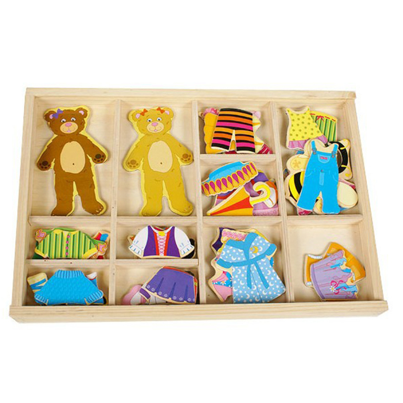 - Đồ chơi gỗ A+ xếp hình AYX0038 được thiết kế thành những chú gấu xinh xắn với các bộ trang phục quần áo giúp cho các bé có thể phối trang phục để giúp bé vui chơi thỏa thích.