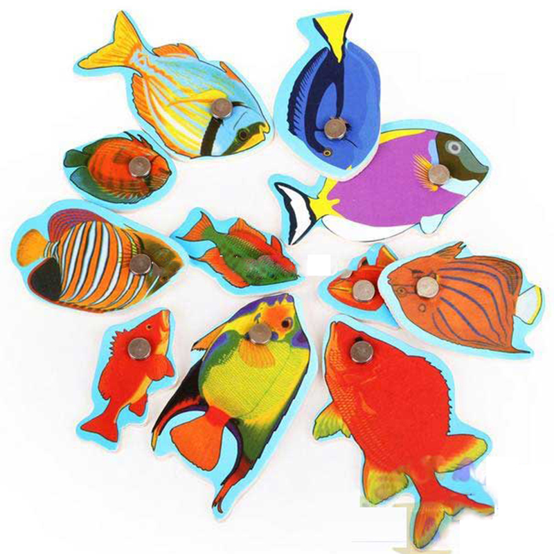 - Sản phẩm là những chú cá nhiều màu sắc có mặt tiếp xúc nam châm, các bé dùng cần câu để có thể bắt chúng.