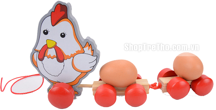 - Sản phẩm được thiết kế bao gồm con gà quả trứng và xe kéo vừa giúp tập nhận biết các con vật của thế giới xung quanh vừa tăng cường sự vận động của bé.