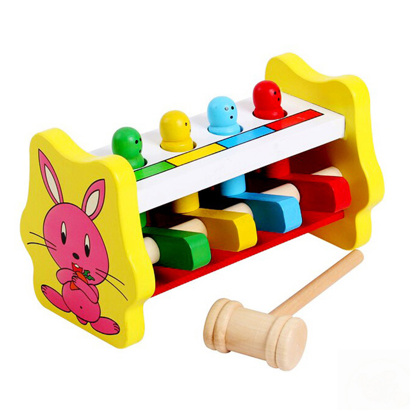 - Bé dùng búa đập vào thanh gỗ phía dưới, chú chuột sẽ nhảy lên, khiến bế rất thích thú.
