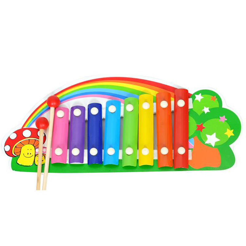 - Bộ sản phẩm gồm 1 đàn 8 phím và 2 dùi gõ kèm theo. Bé dùng dùi gõ, đánh lên các thanh nhạc để tạo tiếng nhạc vui nhộn.
