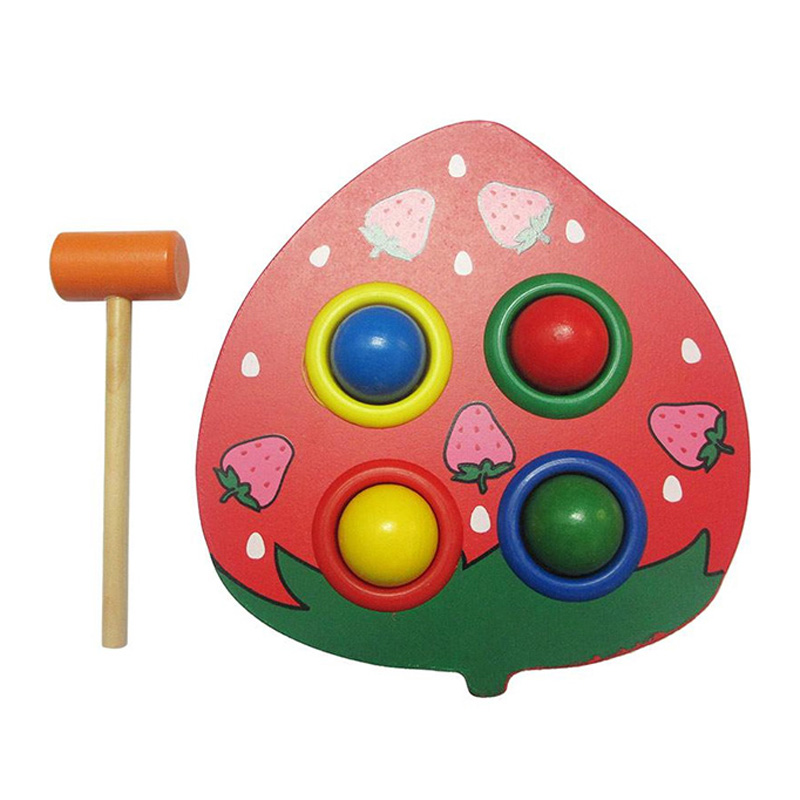 Bé hãy dùng búa gỗ kèm theo, để đập cho những quả bóng rơi xuống