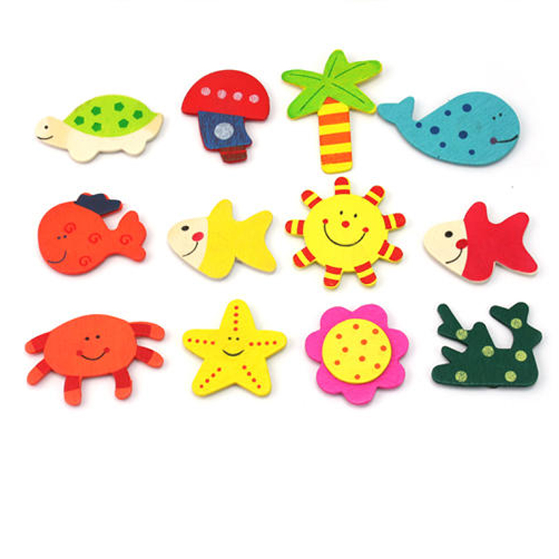 Mỗi gói chứa 12 hình dạng khác nhau bằng gỗ gắn nam châm.