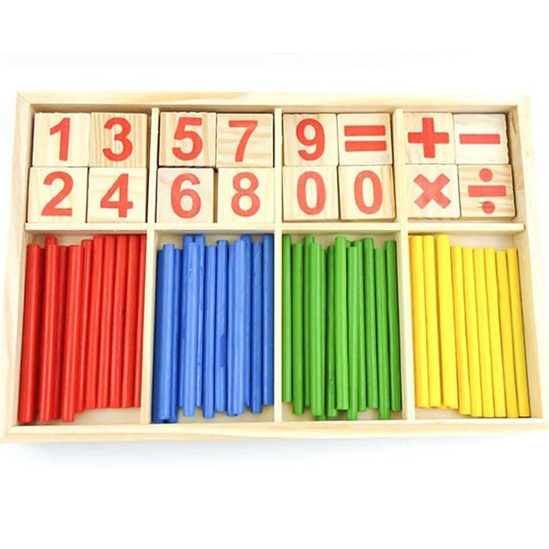 - Các que tính với màu sắc bắt mắt cùng các khối gỗ xinh xắn cũng sẽ giúp bé hứng thú hơn với việc học hỏi, cho bé những giờ học thú vị dưới sự hướng dẫn của bố mẹ.
