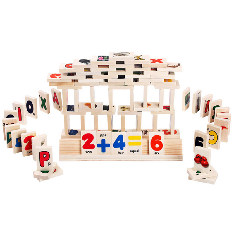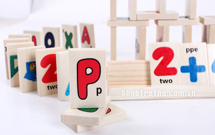 - Tên sản phẩm: Đồ chơi gỗ giáo dục dạng Domino WS0002 (Mặt trước là bộ chữ cái và các con số, mặt sau là các hình ảnh)