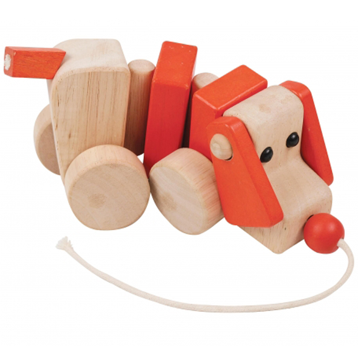 Đồ chơi gỗ hình chú chó kéo dây và em bé