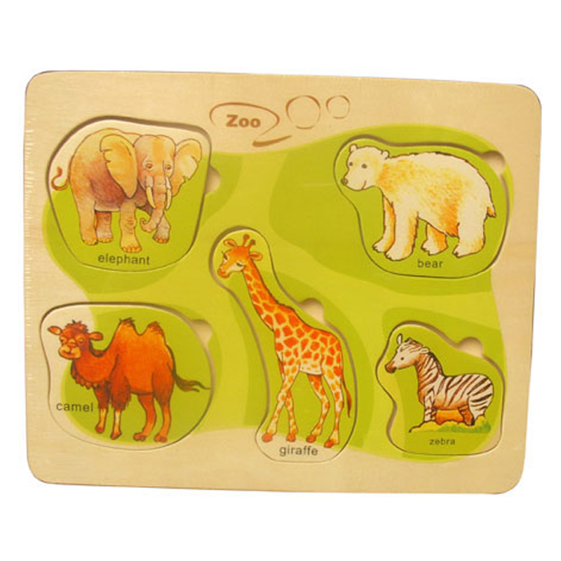Các mảnh ghép mang hình ảnh sinh động kèm tên tiếng Anh của các loài động vật hoang dã như: voi, gấu Bắc Cực, hươu cao cổ, lạc đà, ngựa vằn.