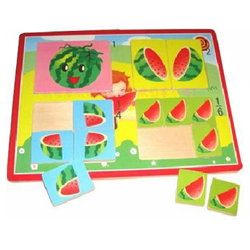 Ghép hình là trò chơi trí tuệ được hầu hết các bé yêu thích, và cũng là lựa chọn số một của các bậc cha mẹ khi tìm mua đồ chơi cho con mình. Bảng học phân số quả dưa 98257 không chỉ mang đến cho bé những giờ phút vui chơi thú vị, mà còn giúp bé rèn tính kiên trì và phát triển tư duy logic. Qua trò chơi, bé còn học được cách nhận biết các loại bánh quen thuộc có trong bảng ghép hình.