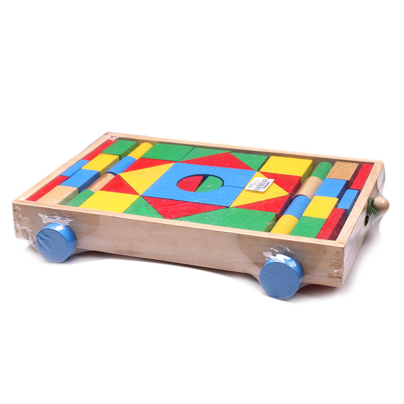 Đồ chơi gỗ xe kéo khối xây dựng C641 với các hình khối có màu sắc và kích cỡ khác nhau.