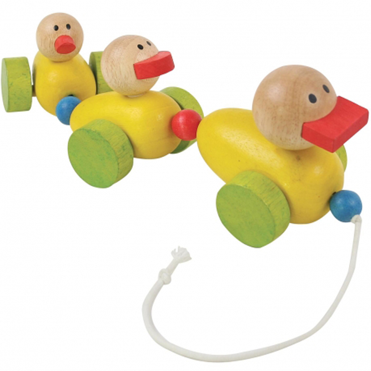Bé dùng dây kéo chú vịt chạy theo mình, khi đó 3 chú vịt kéo theo nhau cùng đi theo bé. Bé di chuyển đến đâu những chú vịt gỗ xinh xắn sẽ di chuyển theo rất vui nhộn