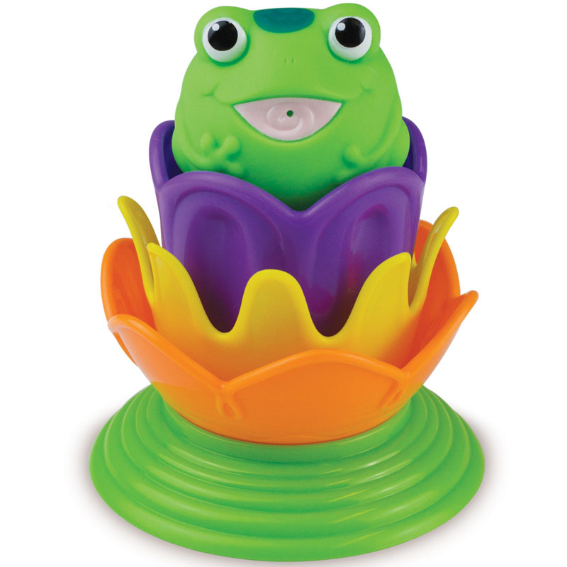 3 cốc thủng như vòi hoa sen giúp chú ếch có thể phun nước tạo sự thích thú cho bé trong giờ tắm.