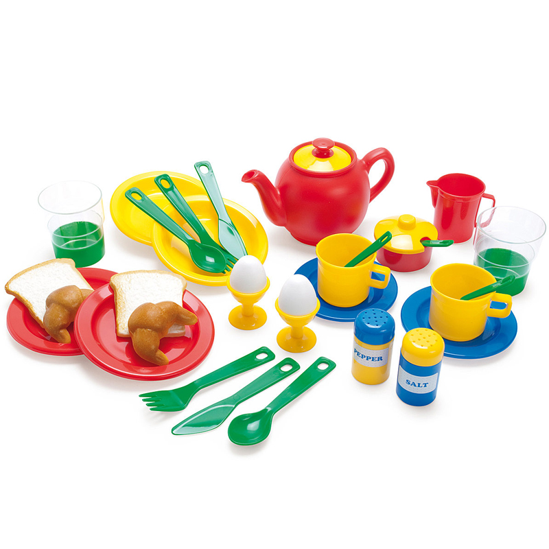 - Bộ sản phẩm bao gồm: 2 bộ đồ ăn, 1 ấm nước, 2 cốc uống nước , hai quả trứng đi kèm đồ ăn trứng, hộp đựng gia vị..., cho phép bé thỏa thích bắt chước công việc chuẩn bị bữa sáng như một người lớn.