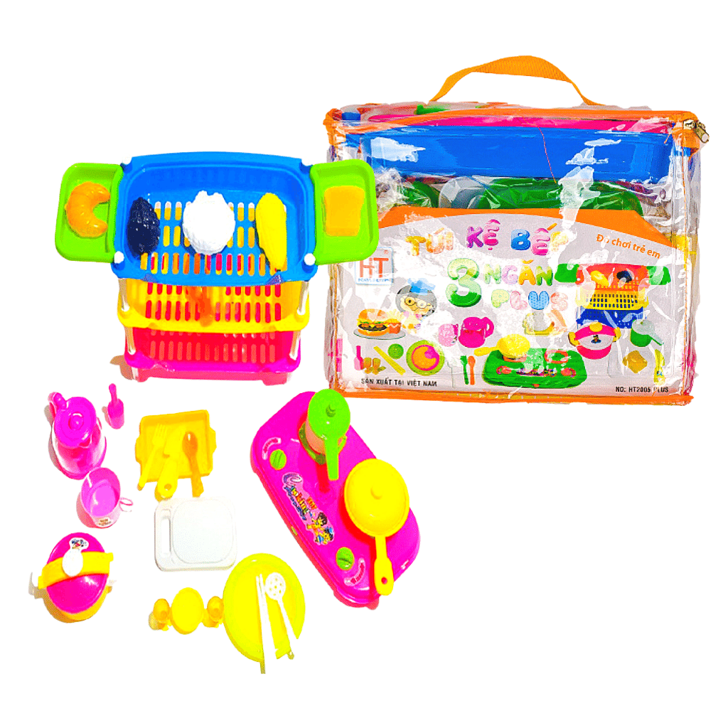 Đồ chơi Kệ bếp 3 ngăn nhạc Việt HT2005 (túi) mang đến rất nhiều các dụng cụ nhà bếp quen thuộc như nồi, chảo, đĩa, nĩa,… được thiết kế vô cùng đẹp mắt. Đặc biệt sản phẩm chiếc bếp ga trong bộ sản phẩm này có đèn sáng vui mắt kết hợp cùng âm thanh sinh động hay những bản nhạc phát ra từ các nút bấm trên bếp ga, cho bé những giờ phút vui chơi thích thú và tràn đầy hứng khởi.