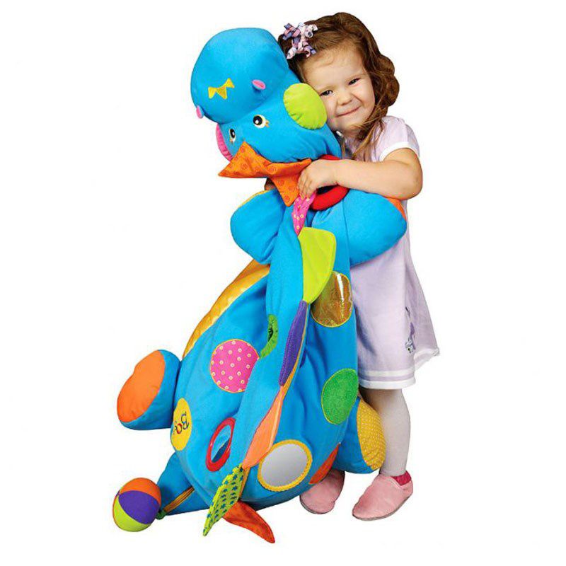 Hình chú khủng long màu xanh vô cùng đáng yêu đang chờ bé khám phá, bé có thể chơi hàng giờ trong lòng chú khủng long như bắt bóng, đoán màu sắc, đếm số,…