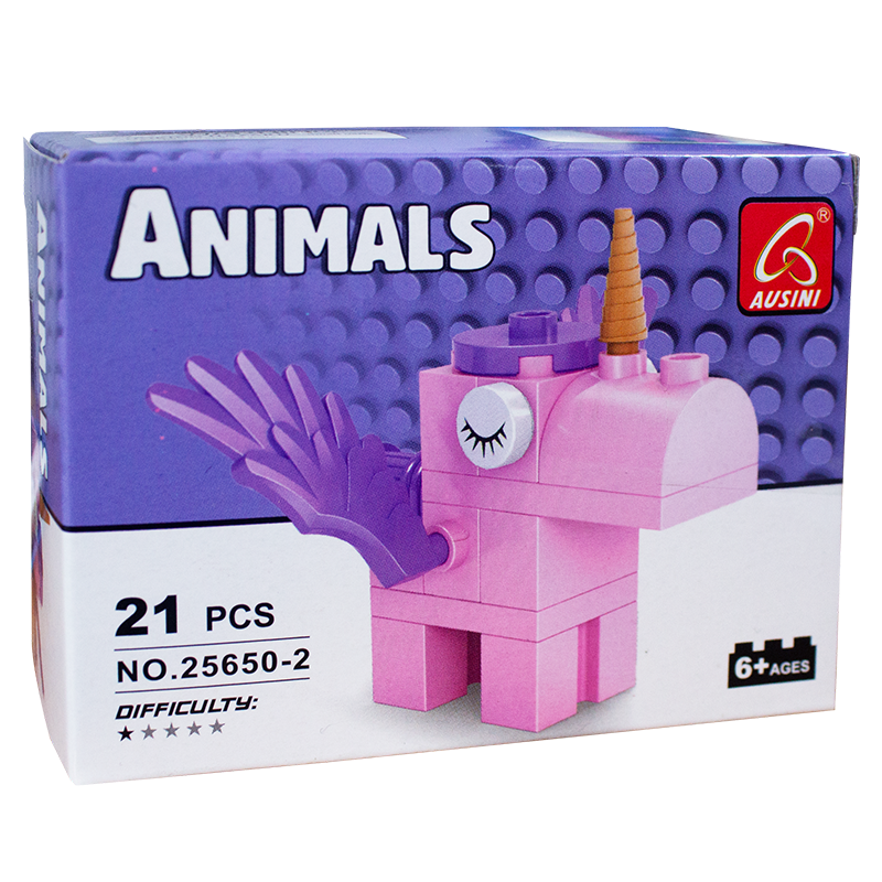 Đồ chơi lắp ráp hình Kỳ Lân Ausini No.25650-2 gồm 21 chi tiết bằng nhựa an toàn để bé ráp thành hình chú ngựa kỳ lân 1 sừng như trong truyện cổ tích. Hơn nữa, bé có thể sưu tập thêm các bộ lắp ghép AUS khác để làm đa dạng các con vật trong bộ sưu tập của mình như: con voi, kỳ lân, cá sấu, cá voi, gà con, con bọ và vịt con.