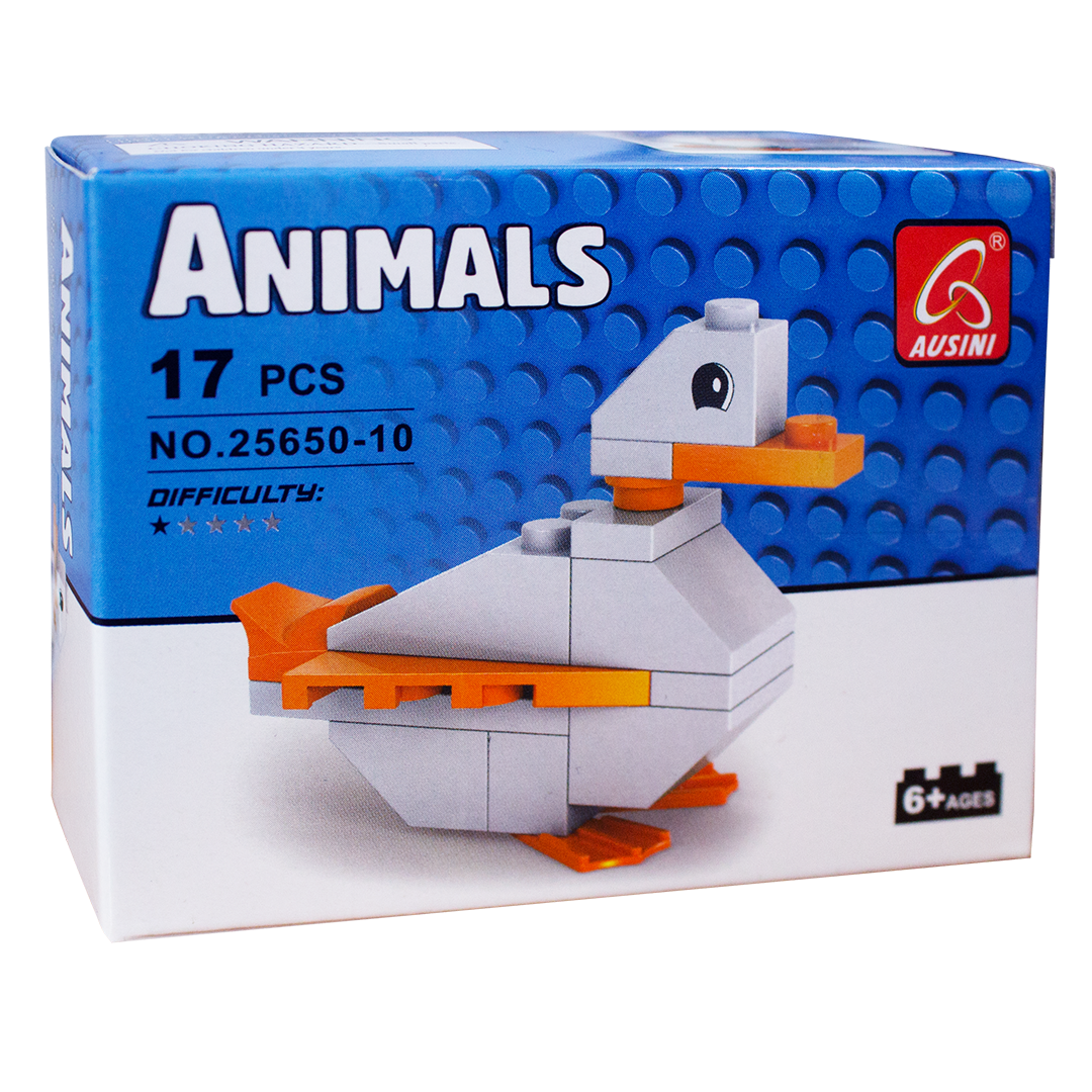 Đồ chơi lắp ráp hình Vịt con Ausini No.25650-10 (17pcs) với số lượng mảnh ghép ít, bé có thể tập tư duy logic thông qua việc tìm những mảnh ghép phù hợp để tạo thành hình con vật yêu thích. Bé có thể sưu tập thêm các bộ lắp ghép AUS khác để làm đa dạng các con vật trong bộ sưu tập của mình như: con voi, kỳ lân, cá sấu, cá voi, gà con, con bọ và vịt con.