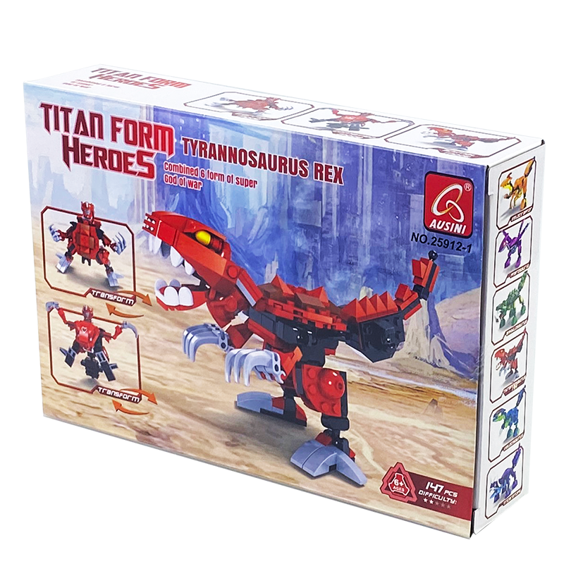 Đồ chơi lắp ráp người và khủng long Ausini No.25912-1 gồm 147 miếng ghép bằng nhựa an toàn với màu sắc khác nhau để bé có thể ráp thành hình khủng long bạo chúa REX. Đặc biệt khi mua trọn bộ 6 sản phẩm lắp ráp hình người và khủng long từ số No.25912-1 -> 25912-6 của AUSINI, bé có thể ráp thành một hình người khổng lồ.