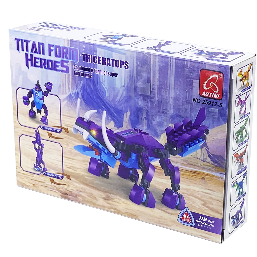 Đồ chơi lắp ráp người và khủng long Ausini No.25912-5 gồm 118 miếng ghép bằng nhựa an toàn với màu sắc khác nhau để bé có thể ráp thành hình khủng long đuôi gai. Đặc biệt khi mua trọn bộ 6 sản phẩm lắp ráp hình người và khủng long từ số No.25912-1 -> 25912-6 bé có thể ráp thành một hình người khổng lồ.