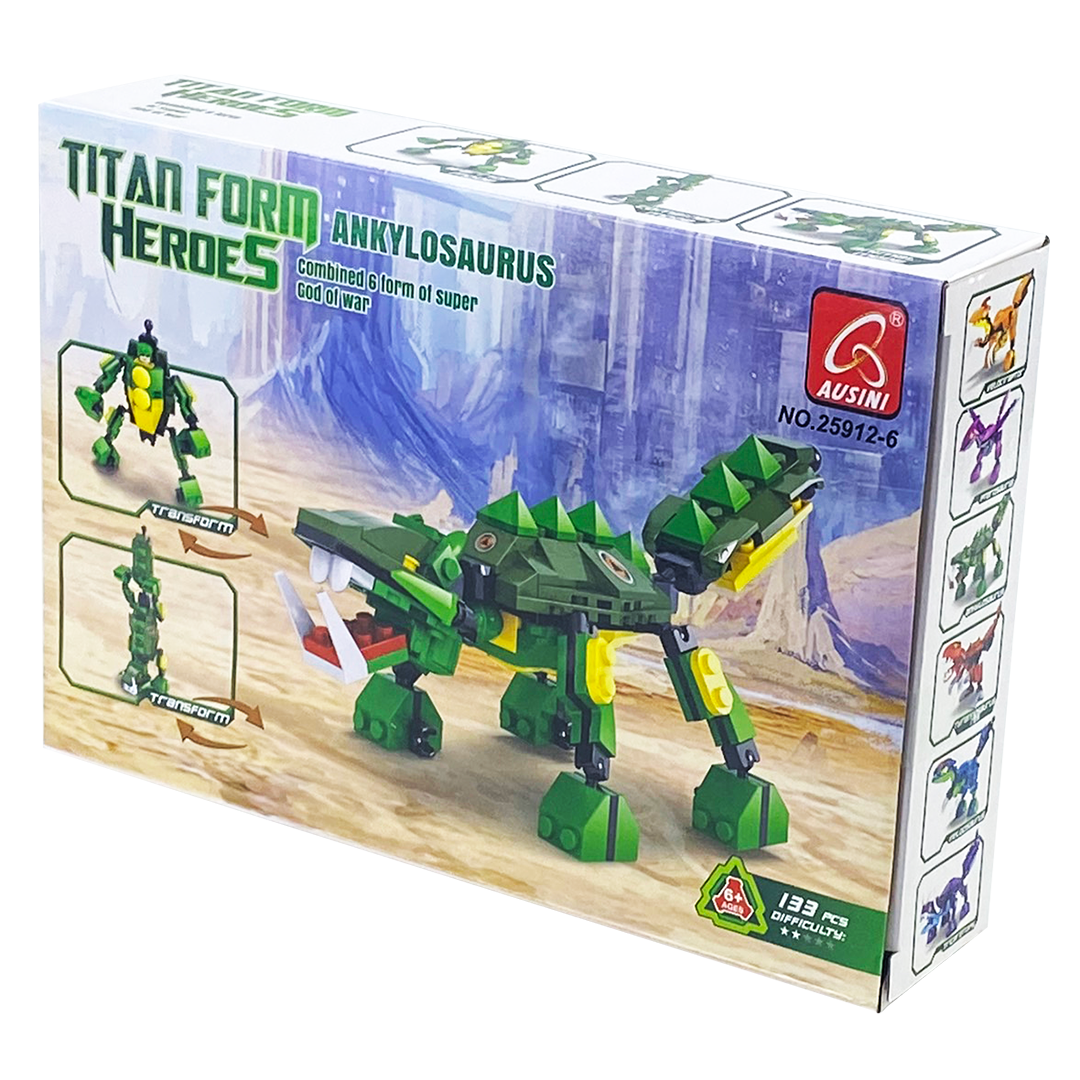 Đồ chơi lắp ráp người và khủng long Ausini No.25912-6 gồm 133 miếng ghép bằng nhựa an toàn với màu sắc khác nhau để bé có thể ráp thành hình khủng long mạnh mẽ. Đặc biệt khi mua trọn bộ 6 sản phẩm lắp ráp hình người và khủng long từ số No.25912-1 -> 25912-6 bé có thể ráp thành một hình người khổng lồ.