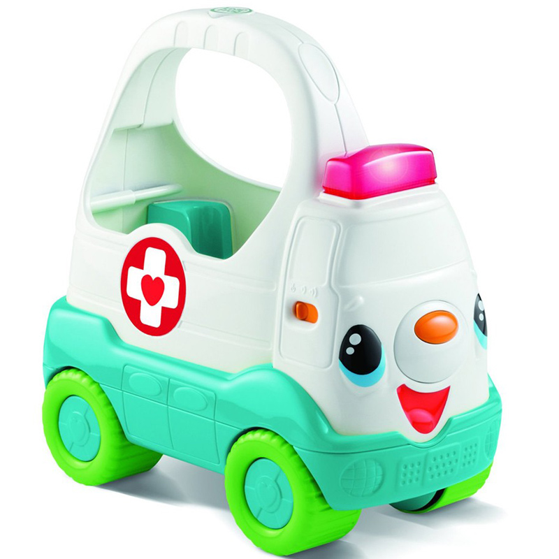 Xe cứu thương di động là chiếc xe với bốn bánh chuyển động linh hoạt, có cả quai xách, dễ dàng cho Bé chơi trò đóng vai bác sĩ bằng cách di chuyển chiếc xe đi cứu chữa cho bệnh nhân. Trên xe bao gồm bốn dụng cụ y tế là ống nghe, kính soi tai, nhiệt kế và ống tiêm, tất cả đều được mô tả rất sinh động, ngộ nghĩnh. Có đèn tín hi���u gắn trên đầu xe phát sáng đồng thời đây cũng chính là nút ấn còi báo động với những giai điệu thân quen, nhắc nhở bé quan tâm hơn tới sức khỏe của bản thân mình.