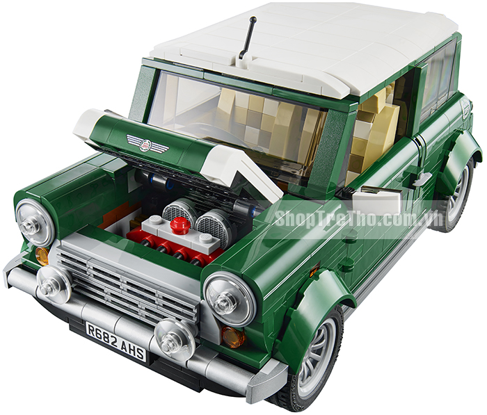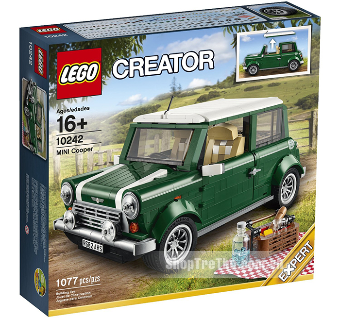 - LEGO 10242 Mini Cooper MK VII, đây là bản sao của chiếc Mini Cooper Mk VII cổ điển được tái hiện thật chi tiết, từ màu xanh lá cổ điển đến màu trắng của gương hậu và hai gờ trên nắp máy, tới các cánh cửa có thể mở được, mui và đèn sương mù kiểu cách, sự chi tiết của động cơ xe và có cả bánh xe dự phòng.