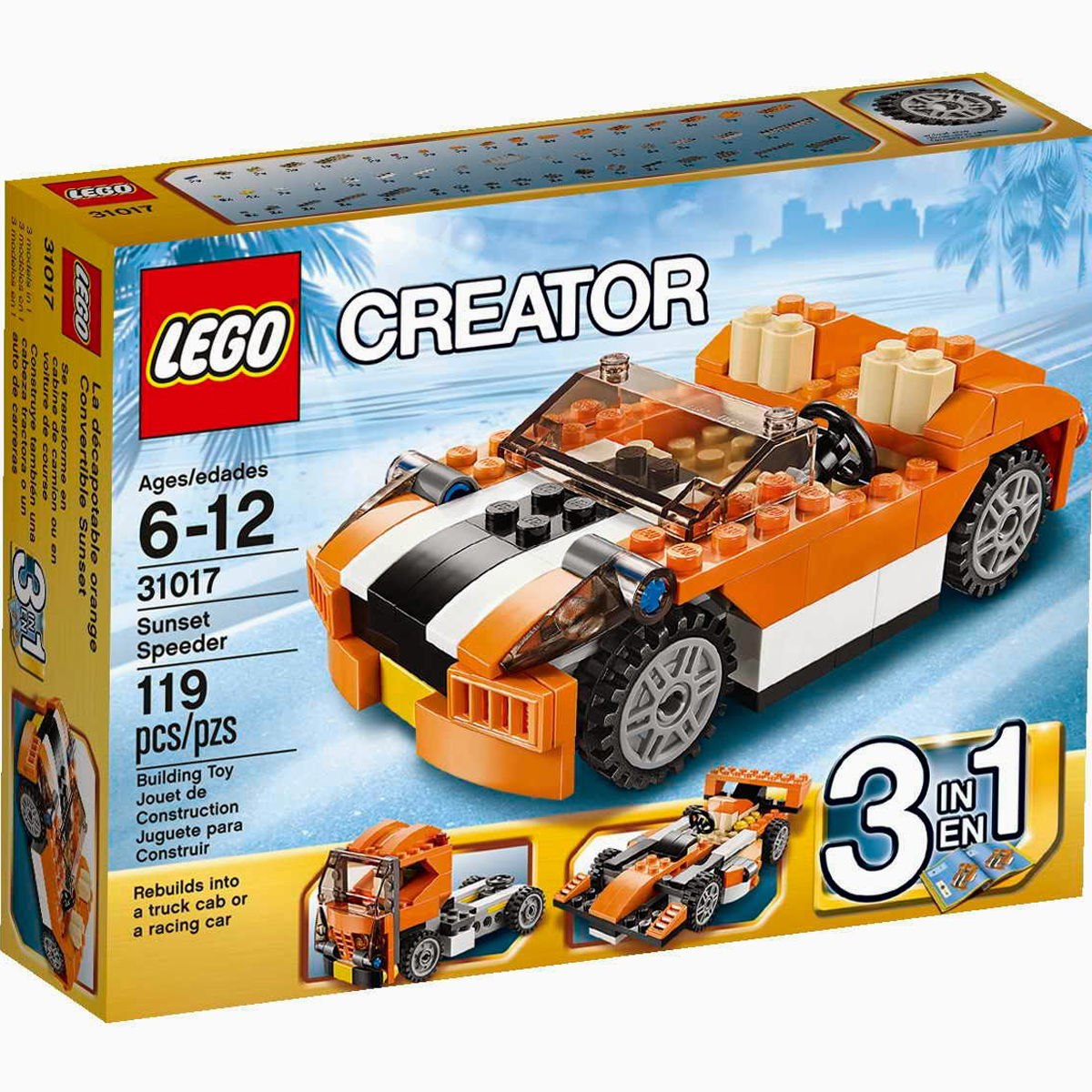 Đồ chơi Lego 31017 - Siêu Xe Hoàng Hôn đây là kiểu dáng xe thể thao Hoàng hôn Speeder là hoàn hảo cho lướt trên đường phố. Với một hình dáng màu cam, màu đen và trắng sọc siêu đặc biệt , bánh xe đua và đèn pha sáng rực, đây là một chiếc xe mà bạn sẽ muốn trong bộ sưu tập LEGO của bạn. Để thêm phần đa dạng thì bạn xây dựng lại nó vào một chiếc taxi xe tải hoặc một chiếc xe đua nhanh hơn.