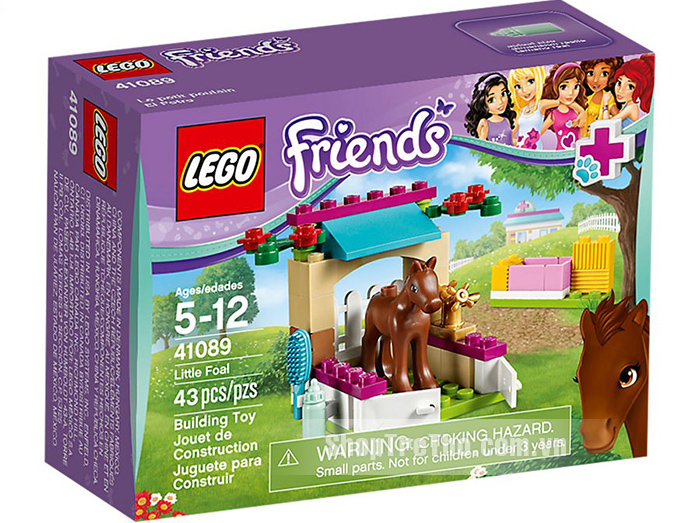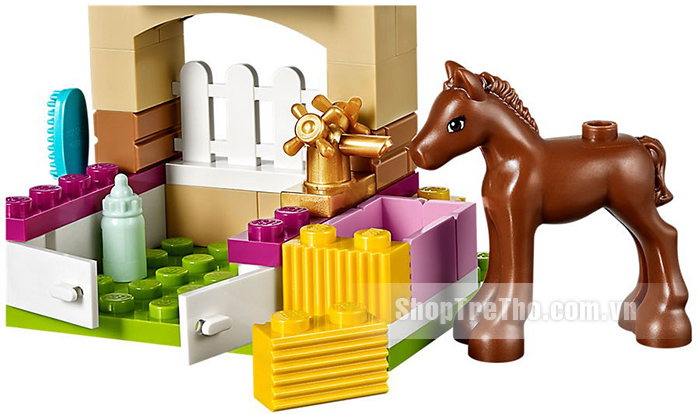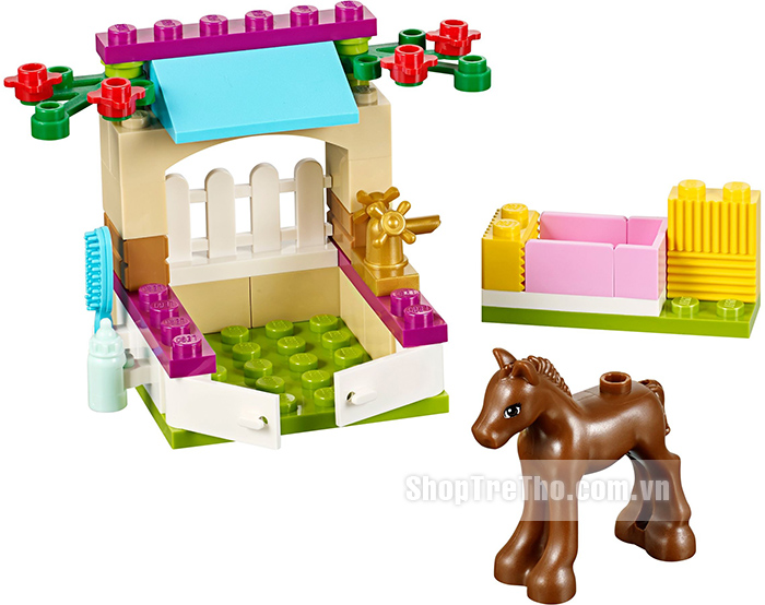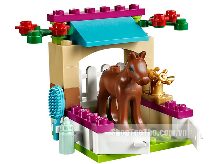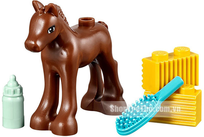 - Lego 41089 - Ngựa con gồm một hàng rào, cửa đóng mở được, máng uống nước, chai thức ăn và bàn chải cho ngựa.