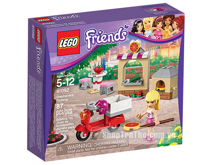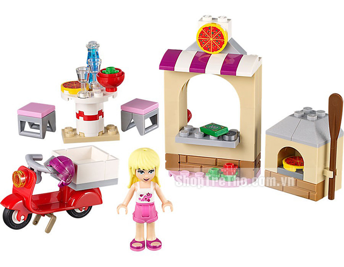 - Đồ chơi Lego 41092 - Cửa hàng bánh pizza của Stephanieđược tạo nên bởi 87 miếng ghép sinh động, đầy màu sắc, bé có thể nhập vai cô bạn Stephanie để quản lý cửa hàng pizza của riêng mình một cách đầy thích thú.