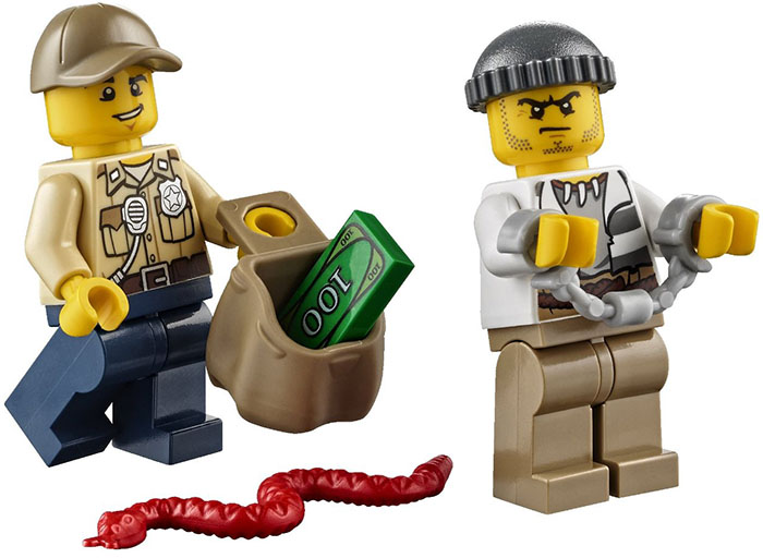 - Bao gồm 2 nhân vật với các loại phụ kiện đi kèm: một sĩ quan cảnh sát và một kẻ lừa đảo.