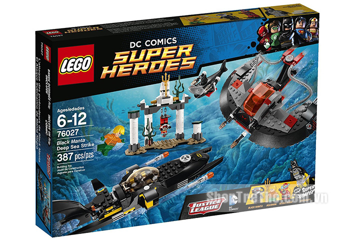 Đồ chơi Lego 76027 – Cuộc tấn công dưới đáy đại dương. Black Manta đã bắt Scuba Robin, giật lấy chiếc đinh ba từ Aquaman và trốn thoát về biển Saucer. Black Manta đang nắm giữ Scuba Robin bắt làm con tin vì vậy Aquaman và Batman phải tham gia vào cuộc đấu tranh giải cứu con tin dưới đáy biển, các bé hãy cùng tham gia vào cuộc chiến không khoan nhượng này và cùng với Aquaman, Batman giải cứu Scuba Robin nhé.