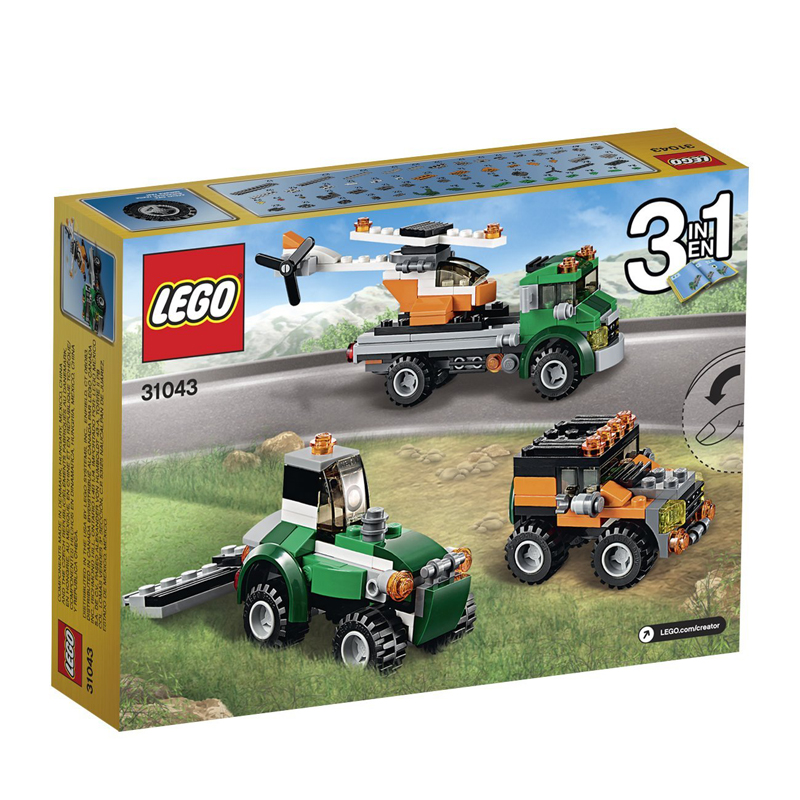 Đồ chơi Lego Creator 31043 - Xe vận chuyển trực thăng phù hợp với bé từ 6 - 12 tuổi, bộ đồ chơi bao gồm 124 chi tiết bằng nhựa nguyên sinh để bé lắp thành 3 mô hình khác nhau như xe tải, trực thăng, xe jeep. Thông qua quá trình vui chơi, bé có thêm nhiều cơ hội phát triển kỹ năng nền tảng, đồng thời thúc đẩy trí sáng tạo, xây dựng trí tuệ toàn diện, phát triển vượt bậc.