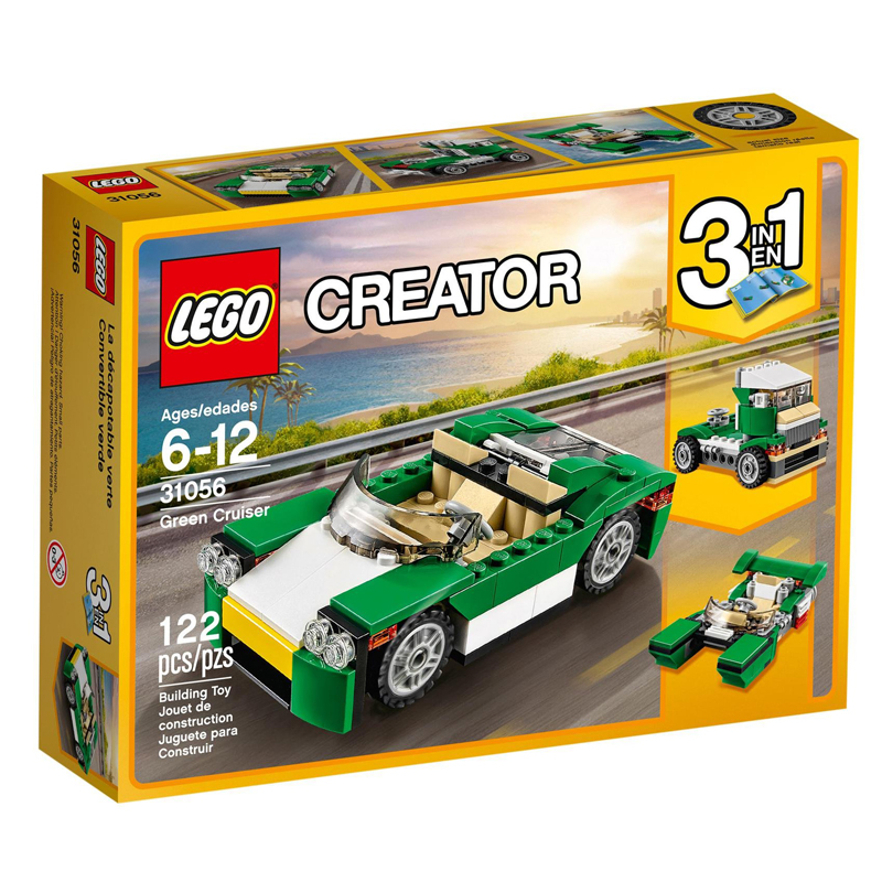 Lego Creator 31056 gồm 122 miếng ghép được làm từ chất liệu nhựa ABS cao cấp, từ đó bé có thể lắp ráp được 3 mô hình khác nhau: xe hơi mui trần, xe tải hoặc một chiếc thuyền máy với màu xanh lá và màu trắng đẹp mắt. Sản phẩm là món đồ chơi trí tuệ dành cho các bé từ 6 tuổi trở lên.