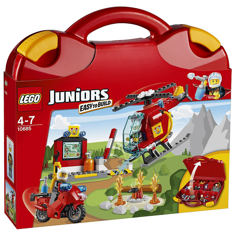 Đồ chơi Lego Juniors 10685 - Vali cứu hỏa sẽ là món đồ chơi độc đáo giúp kích thích trí tưởng tượng, khả năng tư duy sáng tạo cũng như sự khéo tay của các bé trong độ tuổi từ 4 đến 7 tuổi. Bộ đồ chơi gồm 113 mảnh ghép khác nhau: các phương tiện di chuyển, các chú lính cứu hỏa mini sẽ cho bé thỏa sức lắp ráp và nhập vai nhân viên cứu hộ.