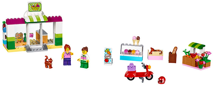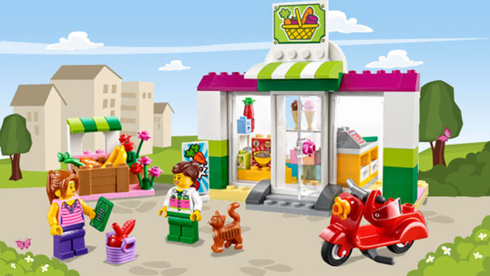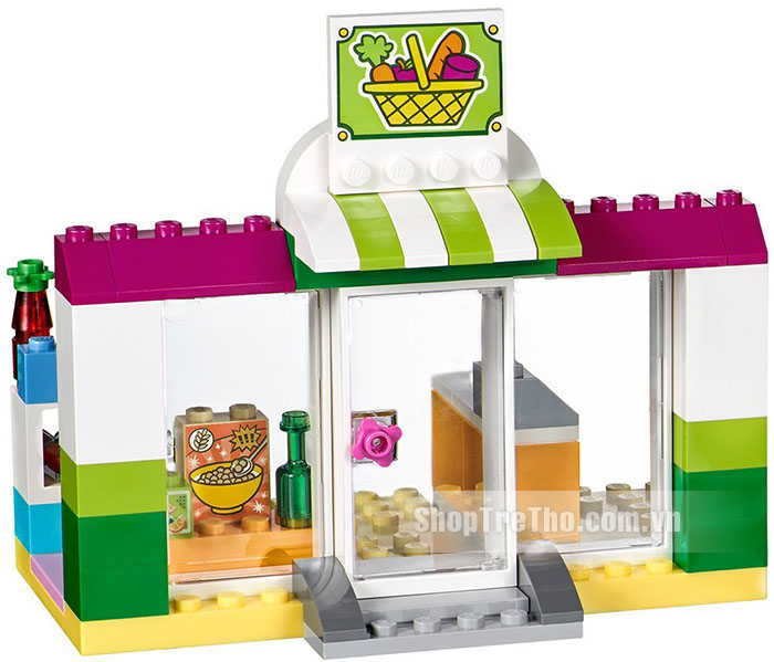 Mô hình gồm 134 mảnh ghép khác nhau đầy màu sắc, những mô hình gạch trang trí dễ thương, cửa hàng tạp hóa, xe tay ga, nón bảo hiểm và 2 nhân vật tí hon. Bé sẽ thỏa sức sáng tạo khi nhập vai 2 nhân vật quản lý siêu thị và khách hàng.