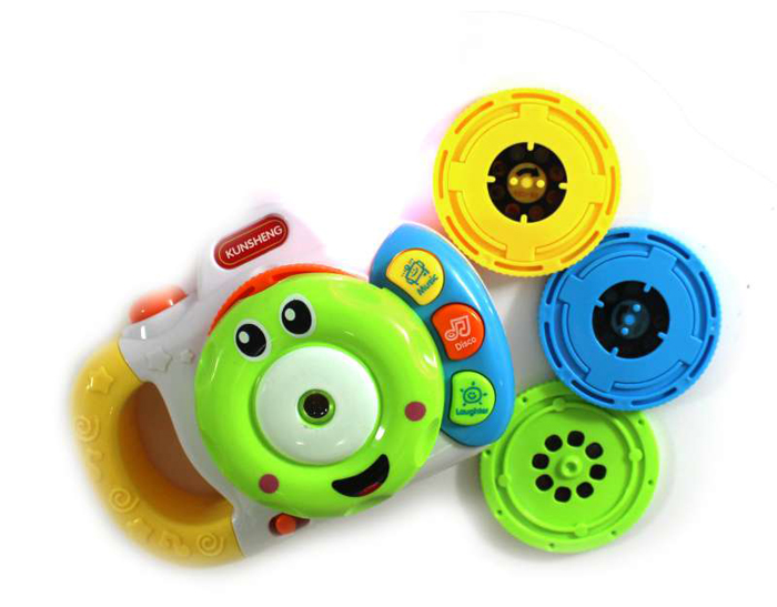 Đồ chơi máy ảnh có khả năng phát ra âm thanh thu hút bé.