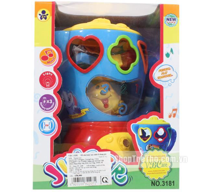 Đồ chơi máy xay sinh tố dùng pin VBCare VBC-3181 với hình dáng mô phỏng chiếc máy xay sinh tố xinh xắn, những âm thanh vui nhộn và hệ thống đèn chớp tắt theo điệu nhạc sẽ kích thích các giác quan của trẻ một cách thật tự nhiên. Đặc biệt, VBCare VBC-3181 còn có các khối thả thông minh giúp trẻ chơi thật vui và phát triển sự linh hoạt, khéo léo của đôi tay.