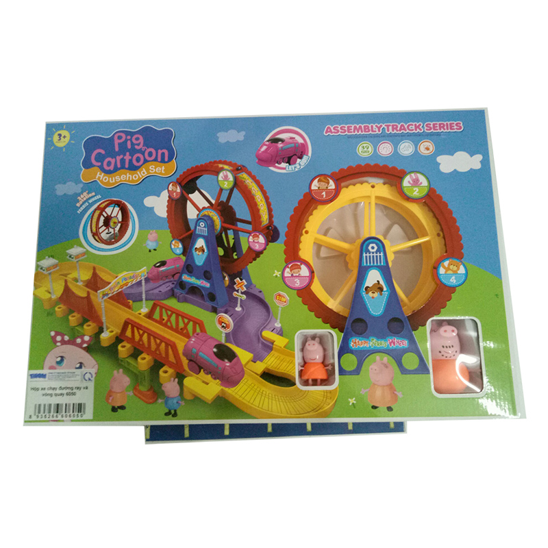 Đồ chơi mô hình đường ray và vòng quay 6050 với chất liệu nhựa an toàn, thiết kế sáng tạo và màu sắc nổi bật sẽ khuyến khích trí tưởng tượng, sáng tạo và phát triển các kỹ năng vận động cho bé. Bộ sản phẩm gồm 1 đầu tàu, 1 chú heo và 1 đường ray có vòng xoay tròn, tất cả đều làm bằng chất liệu nhựa an toàn, các chi tiết trơn nhẵn, không làm trầy xước làn da của bé.